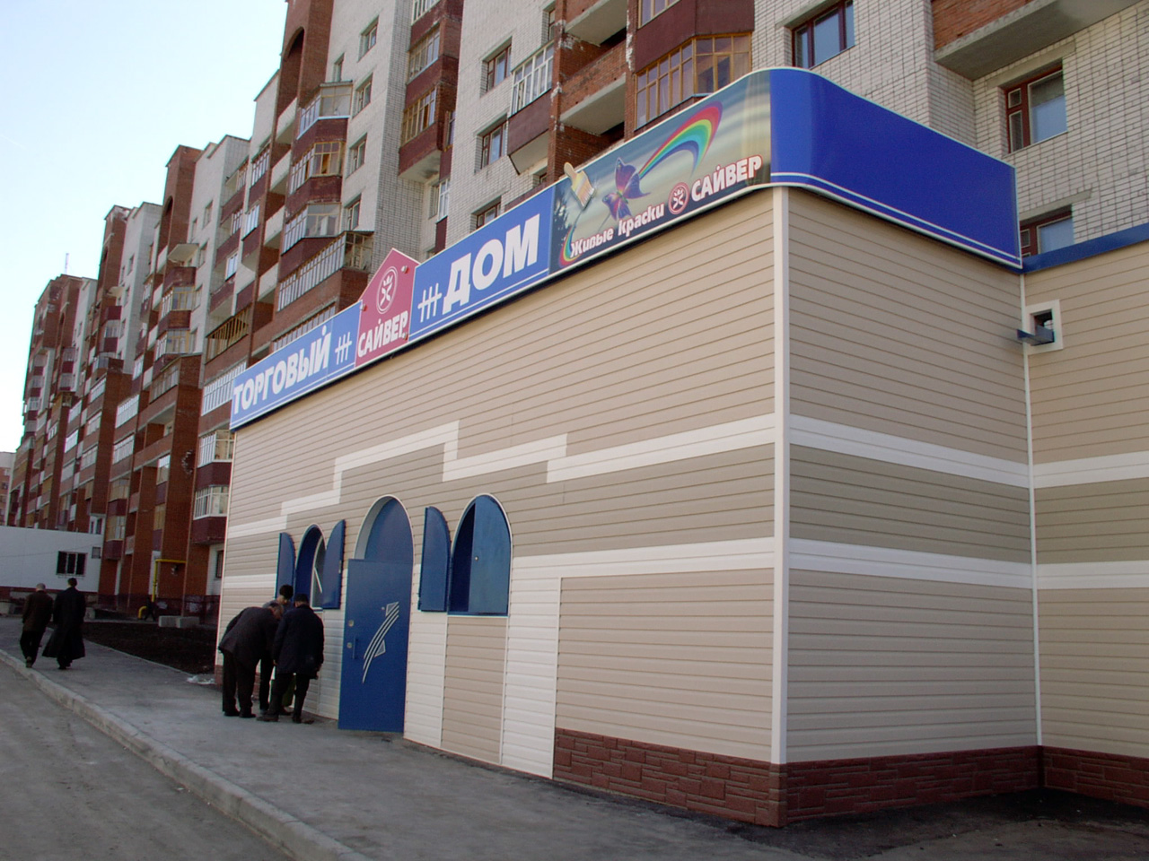 Фасадное оформление магазина Сайвер в Чебоксарах: накладные элементы, стробоскопы
