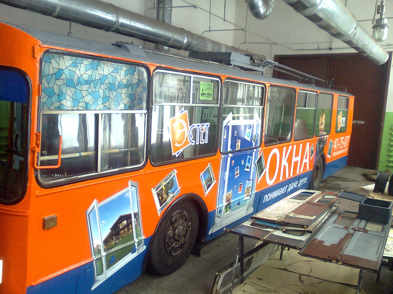 Комбинированное оформление троллейбуса: покраска и плёнки