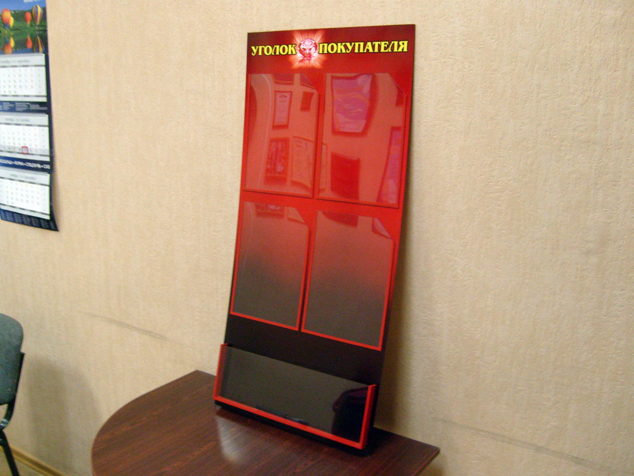 Информационный стенд Уголок покупателя с карманами из оргстекла (пластик 5 мм, полноцветная печать, карманы из оргстекла 2 мм)